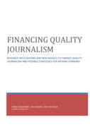 Financing Quality Journalism: Research Into Existing and New Models to Finance Quality Journalism and Possible Strategies for Moving Forward