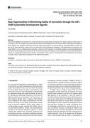"This article highlights the potential for increased and more standardised monitoring of a range of aspects of the safety of journalists. This is in the light of a specific indicator that has been agreed by the UN as part of the Sustainable Development Goals (SDGs). The indicator concerned treats th