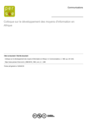 "Considérations générales (les différents moyens d'information envisagés: rôle des journaux, revues et publications européens spécialisés ; la presse africaine et sa situation ; agences de presse et correspondants de journaux africains ; le cinéma, la TV et la radio (les principales statio