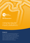 "Big data can contribute to the evidence base in development sectors where evaluations are often infeasible due to data issues. Given the rapidly increasing availability of big data and improving computation capacity, there is a great potential for using big data in future impact evaluations. Big da