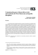 "La comunicación para el desarrollo representa un campo de conocimiento de considerable interés en las dinámicas y procesos del desarrollo, por lo que amerita reconocerla en el contexto peruano. En este sentido, el objetivo de esta investigación, consiste en estructurar una cartografía discipli