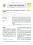 "This study used qualitative research involving a documentary analysis of the existing research in Thailand. In all, 60 research studies between 1993 and 2012 [...] were reviewed and analyzed for participatory communication usage and media types. These studies were classified by the purpose of parti
