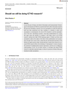 "In over 30 years of history, the field of Information and Communication Technology for Development (ICT4D) has asserted itself both within Information Systems (IS) and across disciplines. However, the core assumptions on which the field was built have been questioned over time, resulting in a situa