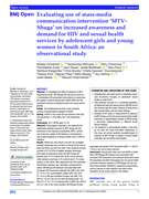 "Objective: To investigate the effect of exposure to 'MTV Shuga:Down South’ (MTVShuga-DS) during the scale-up of combination HIV-prevention interventions on awareness and uptake of sexual reproductive health (SRH) and HIV-prevention services by adolescent girls and young women (AGYW) [...] Conclus