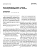 "This paper reviews roughly 200 recent studies of mobile (cellular) phone use in the developing world, and identifies major concentrations of research. It categorizes studies along two dimensions. One dimension distinguishes studies of the determinants of mobile adoption from those that assess the i