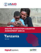 "The Tanzania DECA report presents the findings and recommendations of the Tanzania DECA. It outlines the key aspects of Tanzania’s digital ecosystem and provides 13 recommendations for creating a more inclusive, safe, and enabling environment. Guided by USAID/Tanzania priorities: i) foundational
