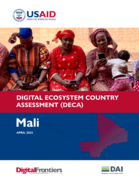 "The Mali Digital Ecosystem Country Assessment (DECA) report presents the findings and recommendations of the Mali DECA. It outlines the key aspects of Mali’s digital ecosystem and provides 11 recommendations for creating a more inclusive, safe, and enabling environment. Guided by 3 USAID/Mali pri