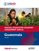 "The Guatemala DECA report presents the findings and recommendations of the Guatemala DECA. It outlines the key aspects of Guatemala’s digital ecosystem and provides nine recommendations for creating a more inclusive, safe, and enabling environment. Guided by USAID/Guatemala priorities: i) partner