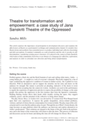 "This article analyses the importance of participation in development discourse and examines the effectiveness of theatre as a participatory technique and communication channel. It considers how theatre forms and aesthetics have potential power to produce individual and collective knowledge and alte