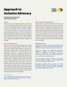 "Inclusive advocacy is mindful of the impact of its goals and objectives on all members of society and ensures that those directly impacted are adequately represented. Strong and inclusive advocacy campaigns build commitment and a cohesive vision among those involved and speak with a strong and unit
