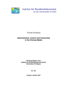 "While China’s policies of reform and opening-up have triggered far-reaching economic transformations in the media sector, and the leeway for uncensored reporting has widened, the principles of political supervision remain essentially unchanged. The article sketches the interplay of numerous gover