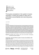 "The system of self-regulation for the press was subject to contentious debates in South Africa from 2010 to 2012. The Press Council of South Africa and the accountability mechanism for the press (self-regulation) underwent two separate processes of review during this period, subsequently altering t