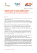 "About three-quarters (76%) of Batswana say the media should "constantly investigate and report on government mistakes and corruption." A similar share (77%) insist on media freedom, while 20% say the government should have the right to prevent the publication of things it disapproves of. In particu