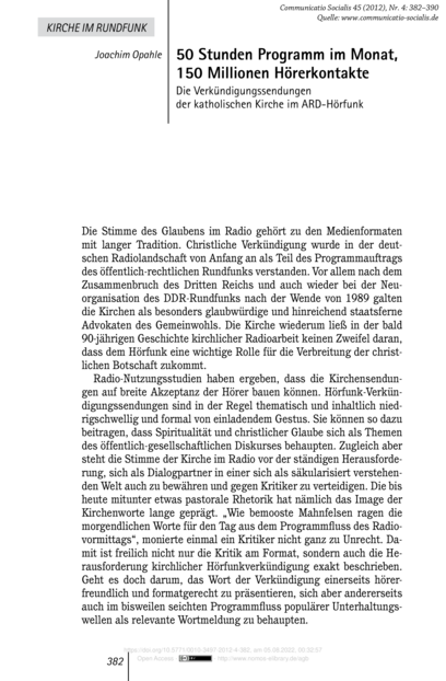 Communicatio Socialis, volume 45, issue 4 (2012), pp. 382-390