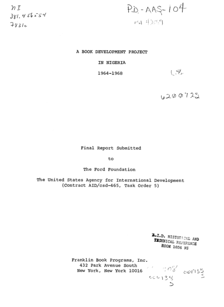 A Book Development Project in Nigeria 1964-1968