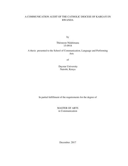 A Communication Audit of the Catholic Diocese of Kabgayi in Rwanda