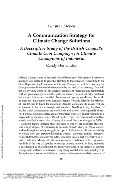 A Communication Strategy for Climate Change Solutions: A Descriptive Study of the British Council’s Climate Cool Campaign for Climate Champions of Indonesia