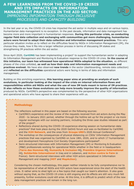 A Few Learnings from the COVID-19 Crisis and its Impacts on the Information Management Practices in the Aid Sector: Improving Information Through Inclusive Processes and Capacity Building