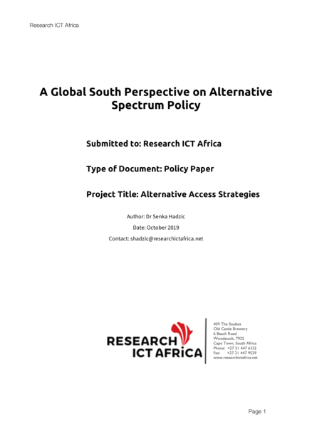 Cape Town: Research ICT Africa (2019), 32 pp.