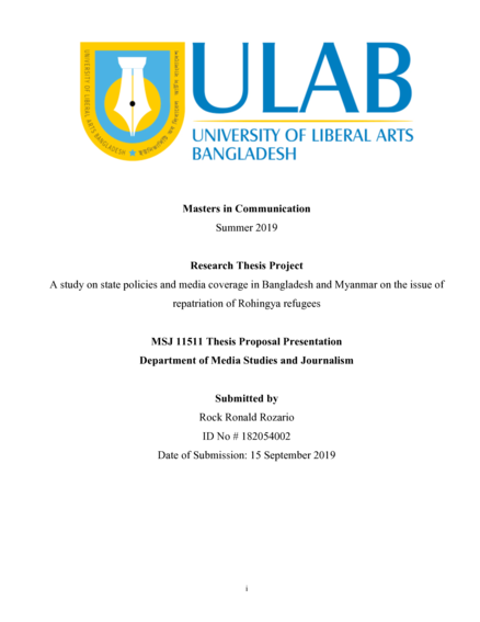 "Bangladesh hosts about one million Rohingya Muslim refugees from Rakhine State of Myanmar, majority of them fled to the country following a deadly military crackdown on the community in response to Rohingya militant attacks on Myanmar security forces on August 25, 2017. The United Nations termed the clampdown ‘genocidal’ and aimed at ‘ethnic cleansing’ of Rohingya. The violence against this beleaguered community and their forcible displacement to Bangladesh garnered global media attention and international outrage. Under intense global pressure Myanmar signed a bilateral agreement with Bangladesh for repatriation of Rohingya refugees, and later both countries also inked a deal with United Nations Refugee Agency (UNHCR) for the same purpose. Despite the deal and two attempts in November 2018 and August 2019, not a single Rohingya has been repatriated, largely due to reluctance of refugees for an “unconditional return” without a concrete guarantee of basic rights including citizenship and safety in Myanmar. While Bangladeshi officials and media at large continue to blame Myanmar for gross failure in creating conditions conducive for a return of Rohingya refugees, official and media position in Myanmar point finger to Bangladesh’s inefficiency in convincing Rohingya refugees for the return. Thus, this paper will present arguments to show connection and similarities of state policies and media agenda on the issue of Rohingya refugee repatriation by analyzing various discourses and examining contents of media in Bangladesh and Myanmar. This research is likely to be more interpretative than statistics, figures and numeric." (Abstract)