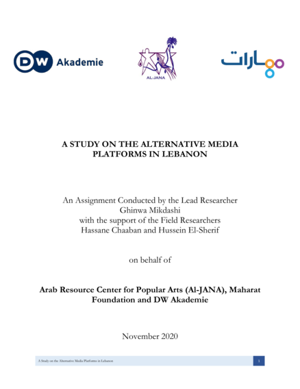 Arab Resource Center for Popular Arts (Al-JANA); Maharat Foundation; Deutsche Welle DW Akademie (2020), 23 pp.