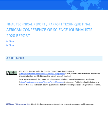 African Conference of Science Journalists 2020. Virtual, November 17 - 20, 2020. Theme: Bolstering the Role of Science Journalism During a Pandemic and an ‘Infodemic’