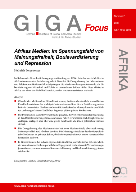 "Obwohl der Mediensektor liberalisiert wurde, besitzen die staatlich kontrollierten Rundfunkanstalten – das wichtigste Informationsmedium für die Bevölkerungsmehrheit – in den meisten Ländern noch ein flächendeckendes Monopol; nur in den Städten und einigen kleinen ländlichen Regionen gibt es private Konkurrenz. Die Printmedien, darunter vor allem die privaten, die von entscheidender Bedeutung in den Demokratisierungsprozessen waren, haben zwar immer noch lediglich kleine Auflagen, verfügen aber über eine große Reichweite, die ihnen politischen Einfluss sichert. Die Deregulierung des Medienmarktes hat zwar Medienvielfalt, aber noch wenig Meinungsvielfalt und -freiheit bewirkt: Die Meinungsvielfalt ist durch oligopolistische Tendenzen im privaten Sektor, die Meinungsfreiheit noch immer von staatlicher Repression bedroht. In diesem Kontext hat sich ein eigener, teils käuflicher journalistischer Stil entwickelt, der zum einen von hohem parteilichem Engagement verbunden mit Verlautbarungsjournalismus, zum anderen von Kommerzialisierung und Boulevardisierung gekennzeichnet ist." (Seite 1)