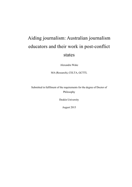Aiding Journalism: Australian Journalism Educators and Their Work in Post-Conflict States
