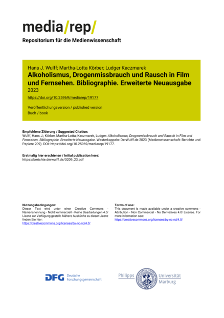 Alkoholismus, Drogenmissbrauch und Rausch in Film und Fernsehen: Bibliographie