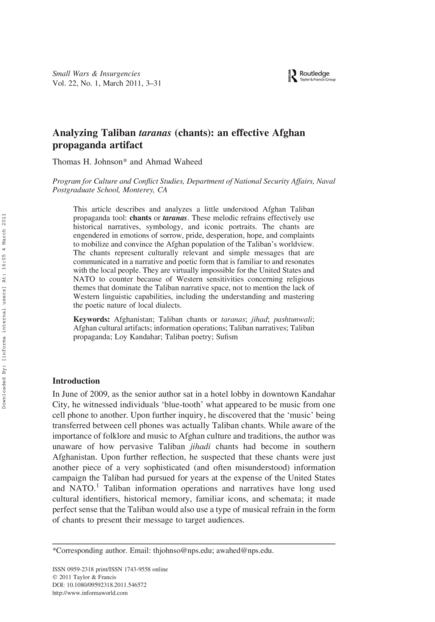 Analyzing Taliban Taranas (chants): An Effective Afghan Propaganda Artifact