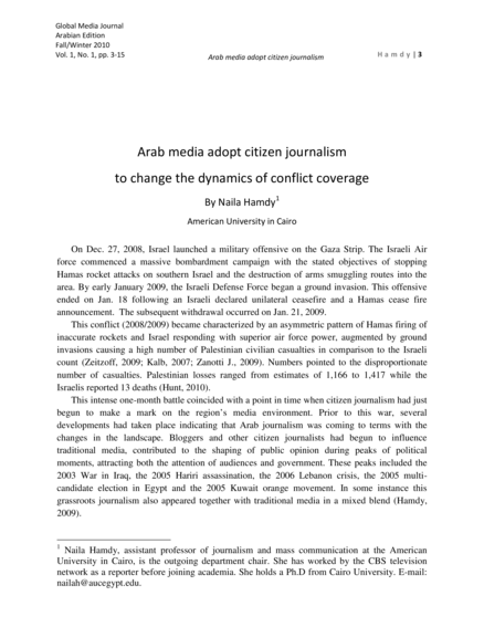Arab Media Adopt Citizen Journalism to Change the Dynamics of Conflict Coverage