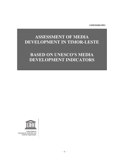 Assessment of Media Development in Timor Leste: Based on UNESCO's Media Development Indicators