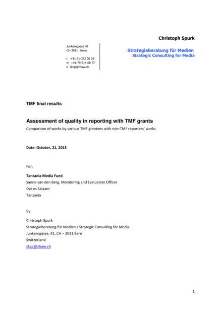 Dar es Salaam: Tanzania Media Fund (TMF) (2013), 28 pp.