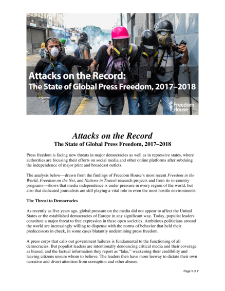 Attacks on the Record: The State of Global Press Freedom 2017-2018