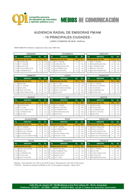 Audiencia radial de emisoras FM/AM: 15 principales ciudades [mayo]
