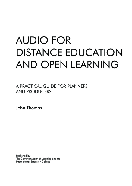 Audio for Distance Education and Open Learning: A Practical Guide for Planners and Producers