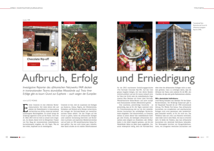 "Investigative Reporter des afrikanischen Netzwerks FAIR decken in transnationalen Teams skandalöse Missstände auf. Trotz ihrer Erfolge gibt es kaum Grund zur Euphorie – auch wegen der Europäer." (Seite 10)