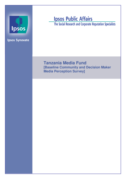 Ipsos Synovate; Tanzania Media Fund (TMF) (2013), 104 pp.