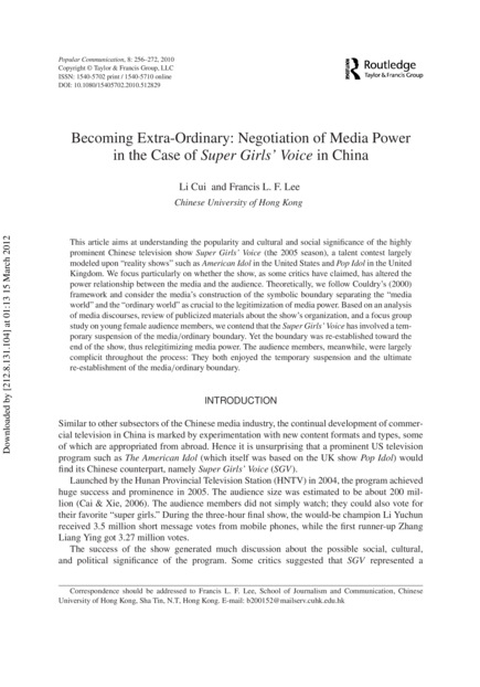Popular Communication: The International Journal of Media and Culture, volume 8, issue 4 (2010), pp. 256-272