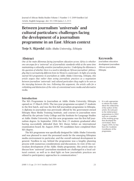 Journal of African Media Studies, volume 1, issue 1 (2009), pp. 23-34