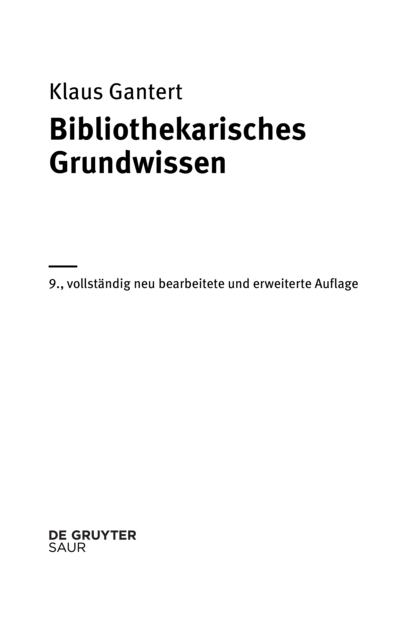 Berlin; Boston, Mass.: De Gruyter Saur, 9., vollst. neu bearb. u. erw. Aufl. (2016), x, 493 pp.