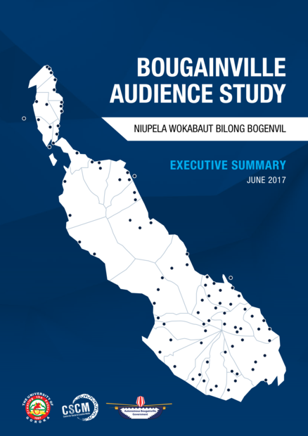 "The Bougainville Audience Research Study is a comprehensive baseline study on the media and communication landscape in Bougainville. It offers key insights into the access and ownership of media and communication channels, and provides an in-depth picture of the audiences’ views and aspirations in relation to the Bougainville Peace Agreement." (Introduction)