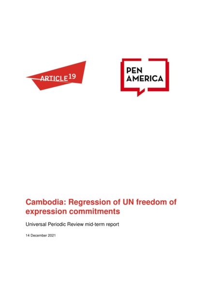 Cambodia: Regression of UN Freedom of Expression Commitments. Universal Periodic Review Mid-Term Report