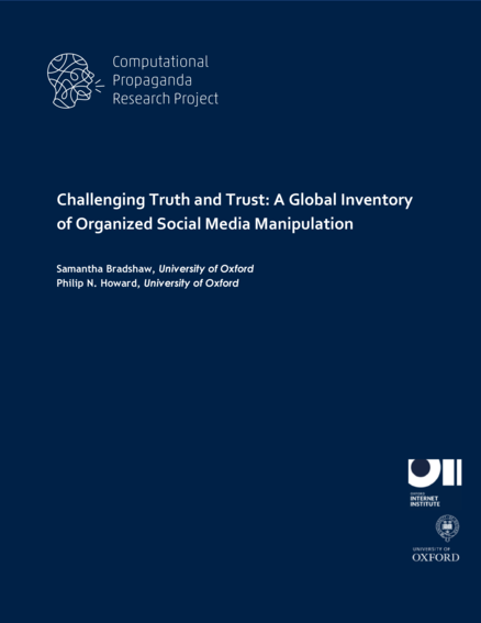 "Our key findings are: 1. We have found evidence of formally organized social media manipulation campaigns in 48 countries, up from 28 countries last year. In each country there is at least one political party or government agency using social media to manipulate public opinion domestically; 2. Much of this growth comes from countries where political parties are spreading disinformation during elections, or countries where government agencies feel threatened by junk news and foreign interference and are responding by developing their own computational propaganda campaigns in response; 3. In a fifth of these 48 countries—mostly across the Global South—we found evidence of disinformation campaigns operating over chat applications such as WhatsApp, Telegram and WeChat; 4. Computational propaganda still involves social media account automation and online commentary teams, but is making increasing use of paid advertisements and search engine optimization on a widening array of Internet platforms." (Executive summary)