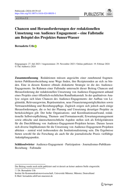 Chancen und Herausforderungen der redaktionellen Umsetzung von Audience Engagement – eine Fallstudie am Beispiel des Projektes #unserWasser