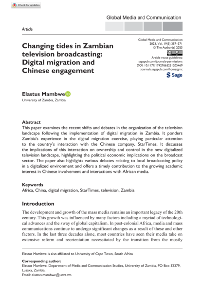 Changing tides in Zambian television broadcasting: Digital migration and Chinese engagement