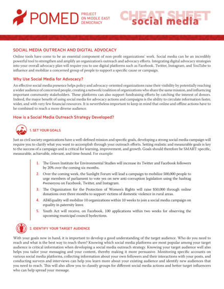 "An effective social media presence helps policy and advocacy-oriented organizations raise their visibility by potentially reaching a wider audience of concerned people, creating a network/coalition of organizations who share the same mission, and influencing important community stakeholders. These platforms can also support fundraising efforts by catching the interest of donors. Indeed, the major benefit of using social media for advocacy actions and campaigns is the ability to circulate information faster, wider, and with very few financial resources. It is nevertheless important to keep in mind that online and offline actions have to be combined to reach a more diverse audience." (Page 1)