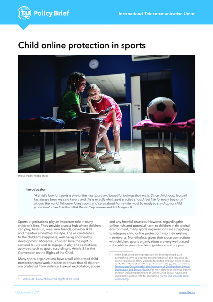 "The intention of this Brief is to support sports organizations – clubs and associations at both the grassroots and professional levels – to better protect children online. It aims to help: