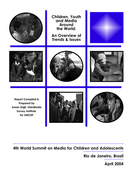 "A look at the world media landscape for children and youth immediately presents two opposing themes: opportunities and risks. For example, globalization of media brings opportunities to broaden children’s outlooks and provide more equal access to information, but it also threatens cultural identification and values. Technological advances bring the promise of new skills and greater youth participation in society, but also increase the risk of child exploitation and informational divides. There is an urgent need for societies to both protect youth and empower them to shape their own media environments, as spelled out by the United Nations Convention on the Rights of the Child and increasingly by media experts and educators around the globe. This overview of trends and issues concerning young people and the media is based on a broad review of existing print and electronic sources, interviews with child media experts from different regions, and analysis of InterMedia’s surveys in transitional and developing countries. The trends and issues highlighted here—from young people’s media options and behavior, to the quality and influence of media aimed at them—all point to the need for more effective use of the vast positive potential of mass media and new technologies to advocate for, and enrich the lives of, children and young people worldwide." (Page 3)