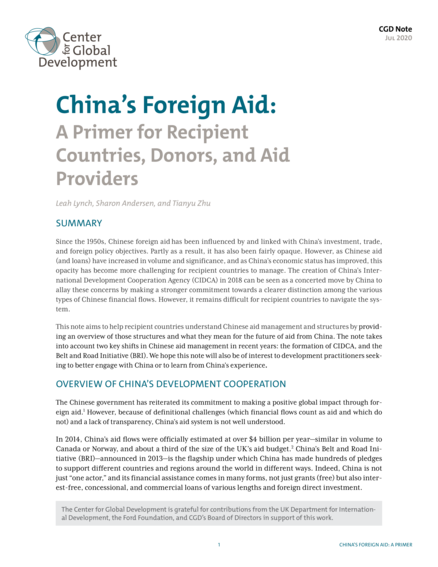 China’s Foreign Aid: A Primer for Recipient Countries, Donors, and Aid Providers